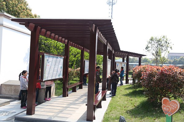 科普知识宣传廊,(这期是以测绘为主题)记录了测绘的发展史和广泛用途。测绘知识背面介绍的是我国著名的地质、地理学家。在它与科普馆之间还有2014年江苏省测绘地理信息局在我校新建的“测量定位基准点”,用以测定海拔高度,是建筑物沉降观测、地面沉降监测、地震监测预报等的高度基准。