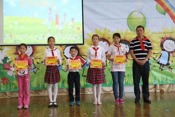在六月一日,这个普天同庆的日子里,城东小学藉此机会举行了 “最美队员”“最美服务员”“最美家长”“最美辅导员”的颁奖仪式,为这次“庆六一”活动增添浓浓的喜庆气氛。在激昂的颁奖曲中,最美队员、最美服务员、最美家长、最美辅导员用双手接过奖状,快乐、自信洋溢在他们脸上。