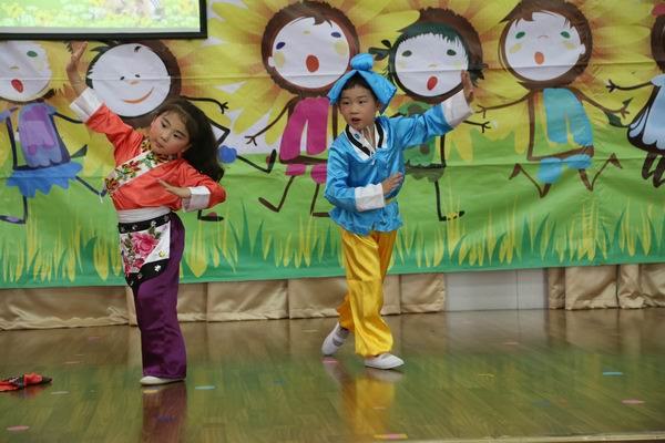 活动中,小演员们身着节日的盛装,隆重登场,他们在老师的精心指导下为我们带来了英语故事、舞蹈、表演唱、小合唱等多种形式的表演。孩子们用歌声,唱出了心中无比的快乐;用舞蹈,跳出了心中崇高的理想。演出现场掌声阵阵,大会场成了一片欢乐的海洋。