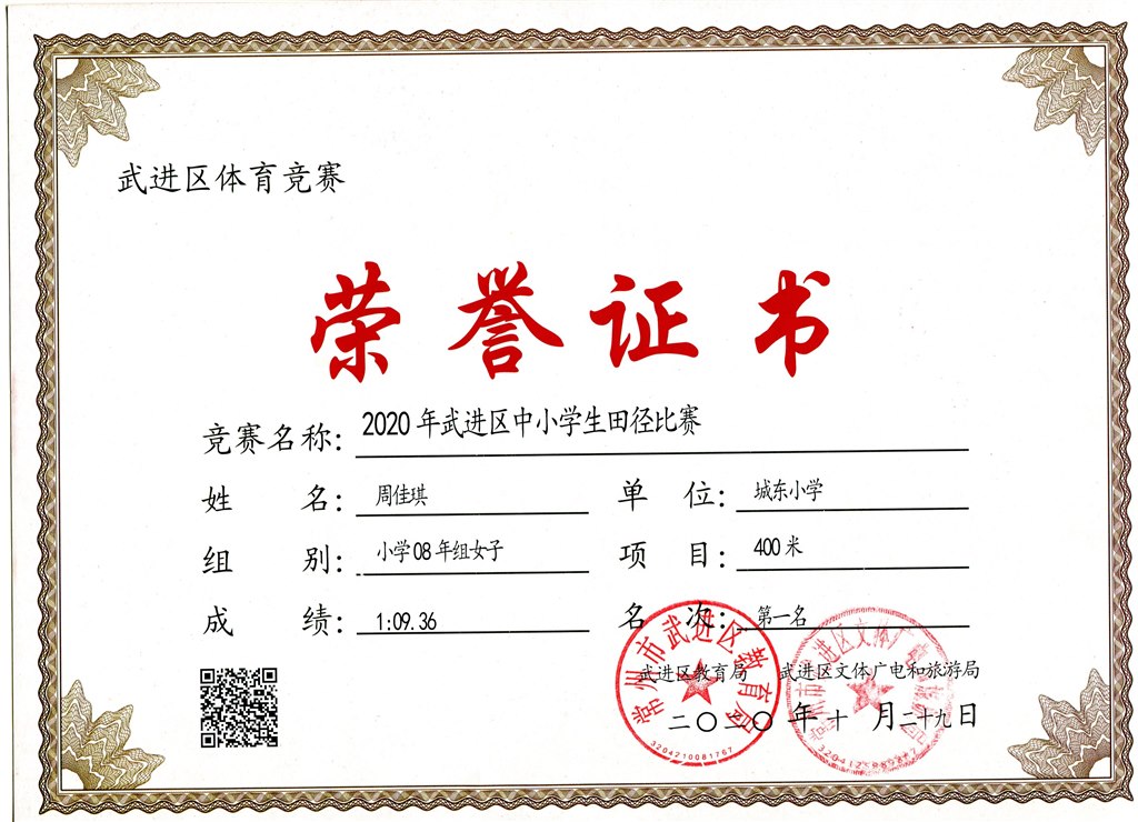 我校在2020年武进区中小学田径比赛中,荣获小学乙组团体第三名。