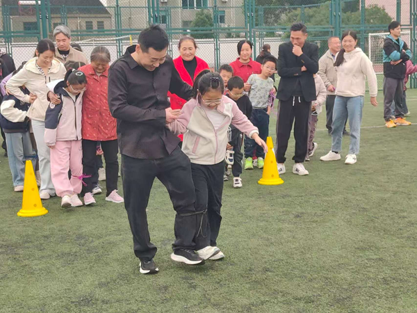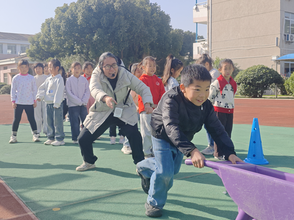低年级组(一、二年级)设整班跳绳、独轮车障碍接力跑项目,彰显童真活力;中年级组(三、四年级)以亲子协作跳绳、两人三足为核心,凝聚协作温情;高年级组(五、六年级)开展“8”字跳绳、迎面接力跑竞赛,展现竞技风采。